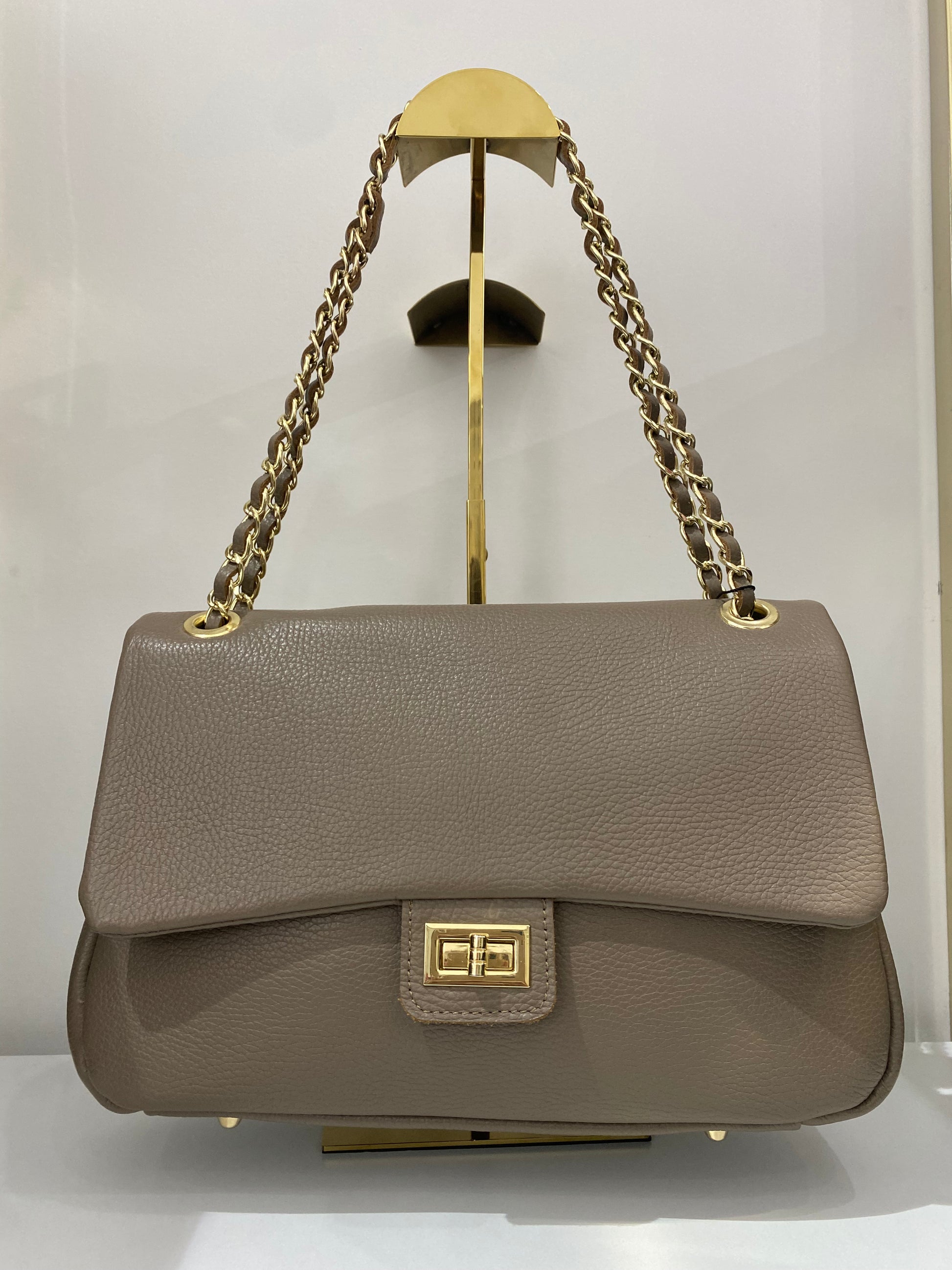 La borsa grande in pelle è l’accessorio ideale per chi cerca stile, funzionalità ed eleganza Made in Italy. Realizzata in pelle di alta qualità, presenta accessori color oro, fondo con piedini in metallo per una maggiore resistenza e una pratica chiusura a girello che assicura sicurezza e raffinatezza. Capiente e versatile, è perfetta per l’uso quotidiano e per completare look eleganti o professionali.