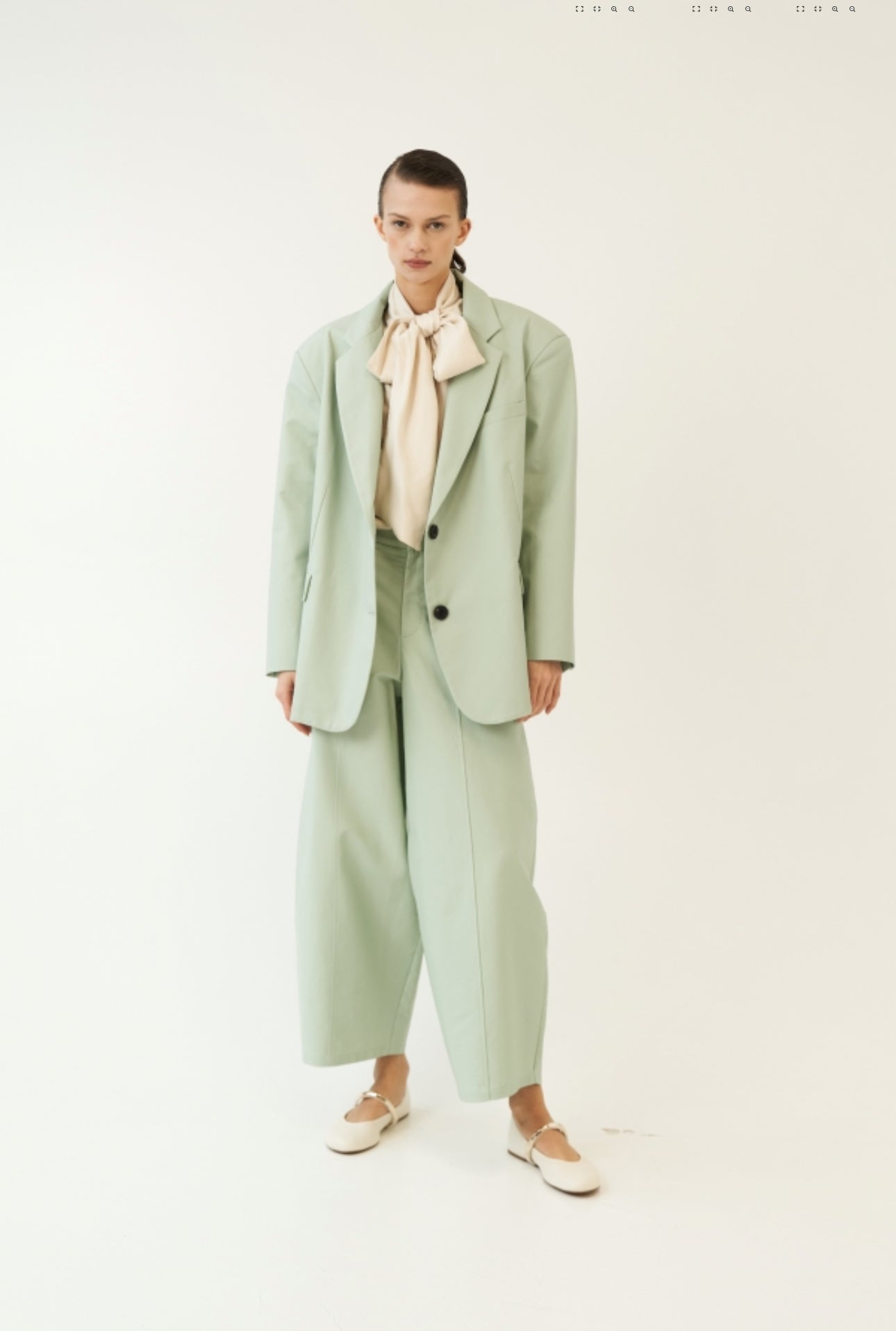 Completo elegante in tessuto leggero, composto da blazer oversize con cintura da annodare in vita e pantaloni ampi a palazzo. Linee morbide e stile minimal per un look sofisticato ma disinvolto. Perfetto per la primavera e l’estate.